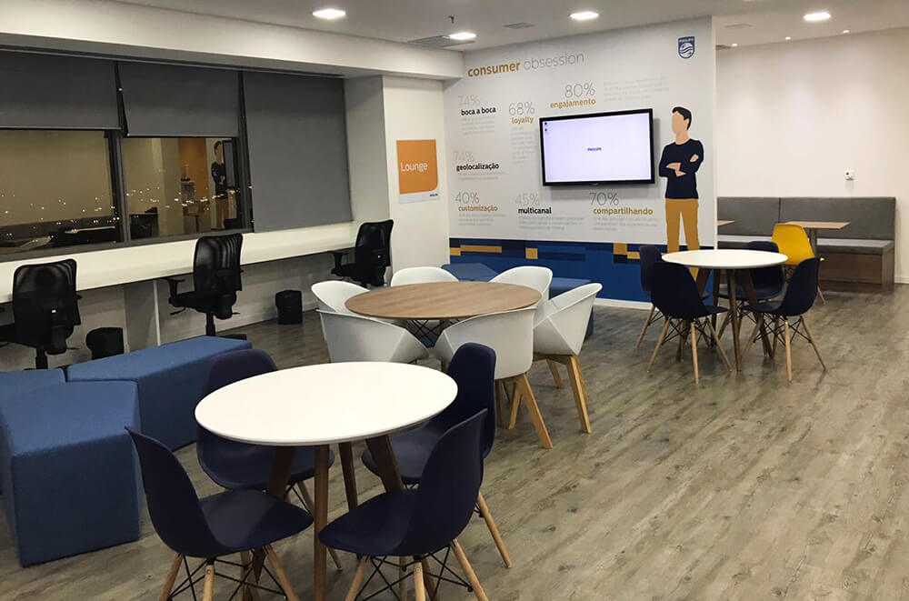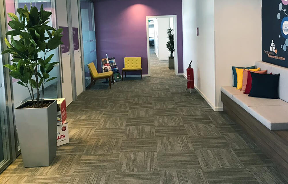 Confiram as instalações do piso vinílico Hercules e do carpete modular Equinox no escritório da Philips em Barueri – SP.