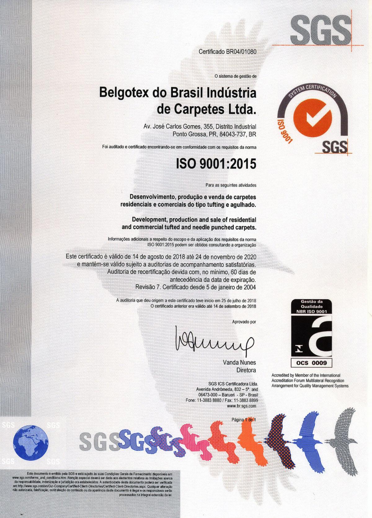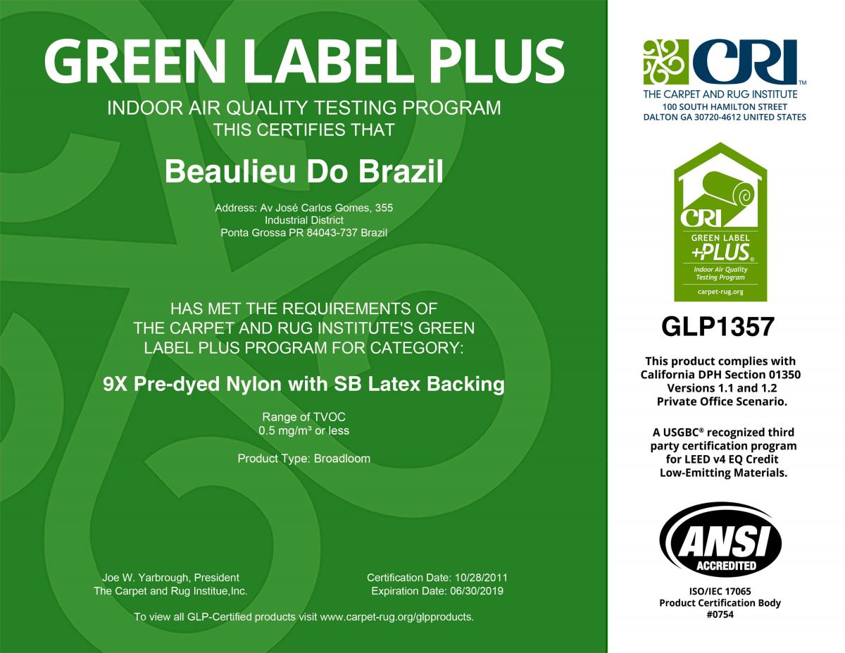 Além desta certificação, a Belgotex obteve um upgrade no ISO 14001 (Sistema de Gestão Ambiental), ISO 9001 (Sistema de Gestão de Qualidade) e Green Label Plus (Qualidade do ar interno).